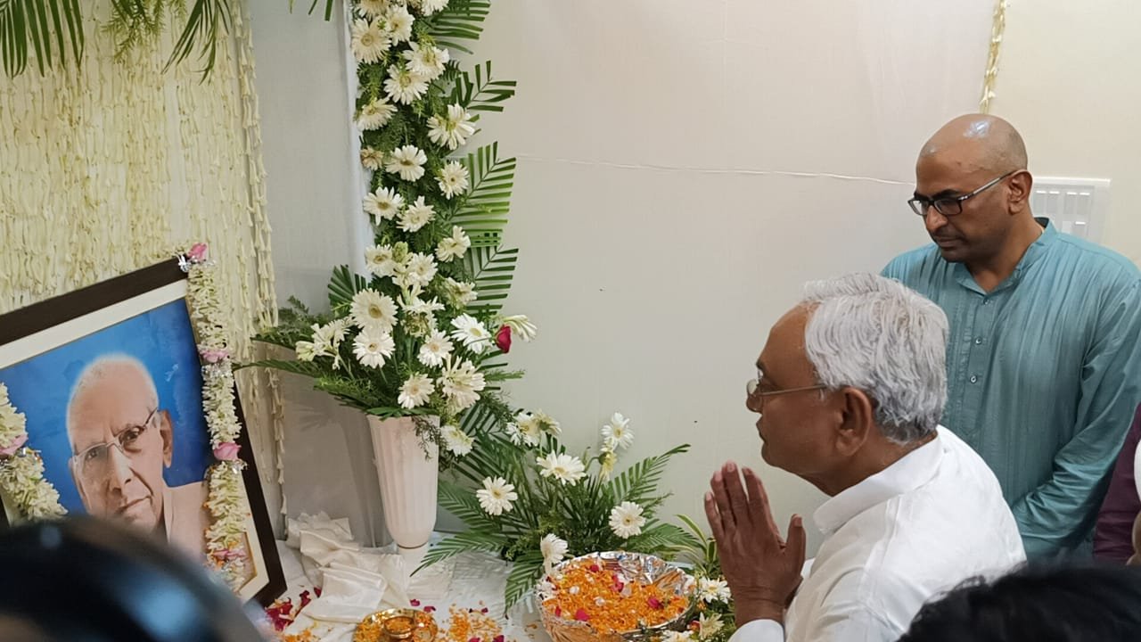 पटना, 19 अगस्त 2023 :- मुख्यमंत्री नीतीश कुमार पटना प्रमण्डल के आयुक्त कुमार रवि के पिताजी स्व० राम प्रसाद जी के श्राद्धकर्म में शामिल हुये। नालंदा जिले के बिहारशरीफ में नवाब रोड, भुसट्टा पंडित गली स्थित निवास स्थान जाकर मुख्यमंत्री ने स्व० राम प्रसाद जी के चित्र पर पुष्प अर्पित कर अपनी श्रद्धांजलि दी।