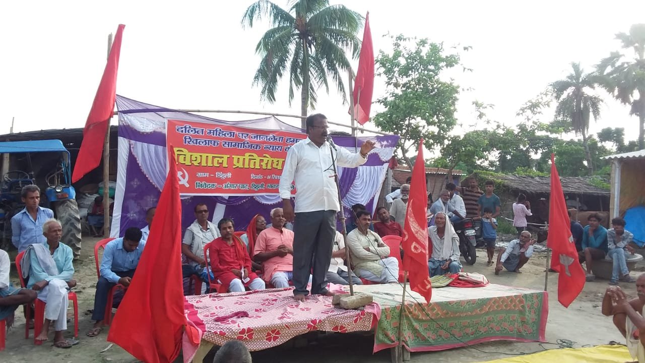 सभा को संबोधित करते हुए  महावीर पोद्दार ने कहा कि दलित महिला पर जानलेवा हमला करने वाले चारों अभियुक्तों को गिरफ्तार कर जेल में बन्द करे प्रशासन। उन्होंने कहा कि पिङित महिला की सुरक्षा एवं 5 लाख रुपये मुआवजा दे। उन्होंने ऐलान किया कि अगर पन्द्रह दिनों के अन्दर अभियुक्तों की गिरफ्तारी हो अन्यथा भाकपा माले जनसन्घर्ष तेज करेगी। उन्होंने कहा कि आजादी के 76 बर्षों बाद भी दलितों को मानसिक, बौद्धिक और आर्थिक रूप से आजाद नहीं होने दिया जा रहा है। पैसा, पहुंच और पैरवी के बदौलत अभियुक्त कान्ड को रफा-दफा करने का खुलेआम धमकी दे रहा है।प्रतिरोध सभा को जिला स्थाई समिति सदस्य ललन कुमार, प्रखंड सचिव गंगा प्रसाद पासवान, शन्कर प्रसाद यादव, तननजय प्रकाश, दिलीप कुमार राय, राम बलि सिंह ने भी सम्बोधित किया।